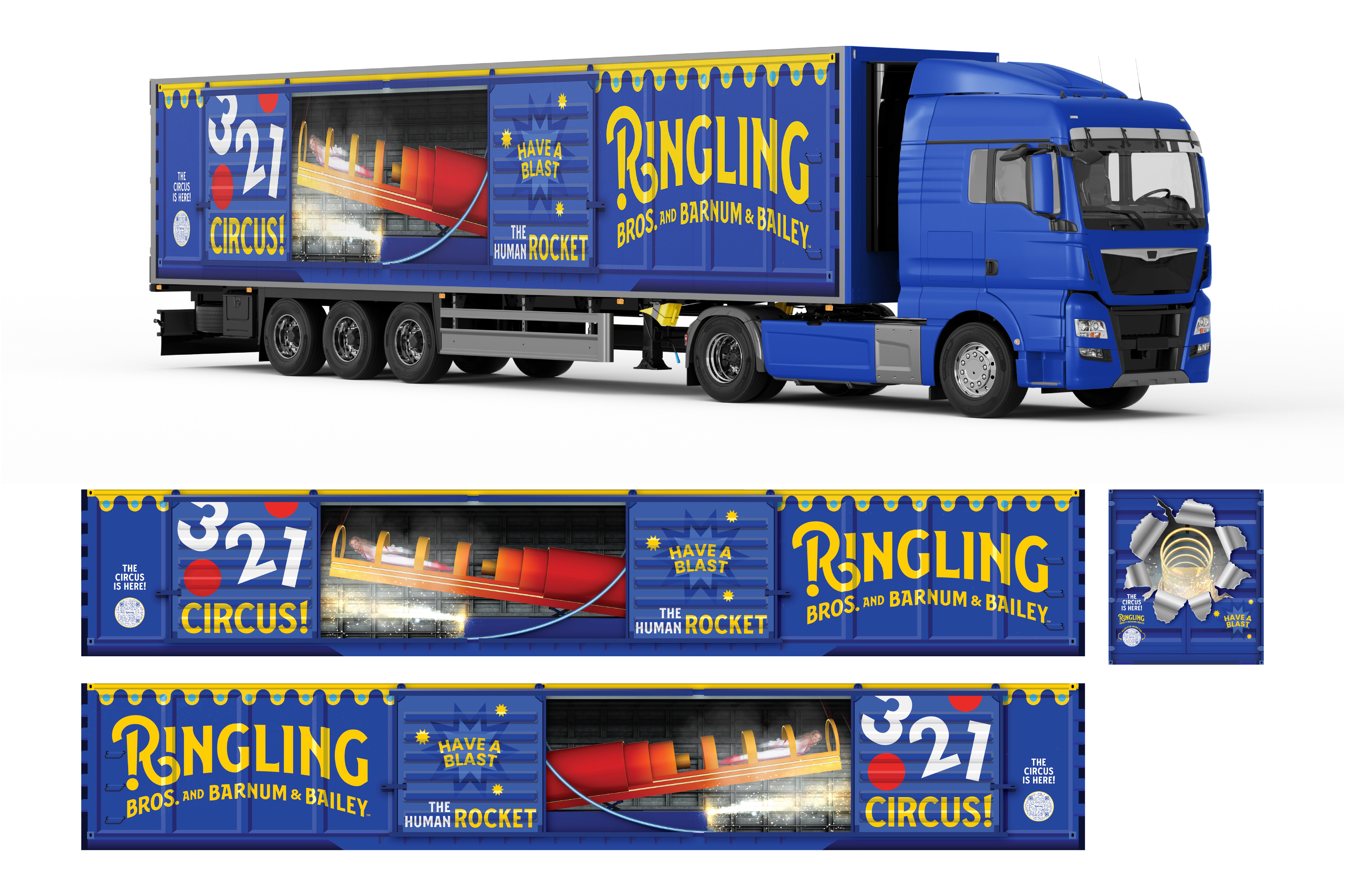 Ringling Bros. and Barnum & Bailey, known as, "The Greatest Show on Earth", is an iconic American traveling circus brand built on spectacle and visual drama. This project involved designing high-impact truck wraps that translate key circus elements into bold, mobile advertising. The wraps use vibrant color, dimensional graphics, and illusion-based composition to create a striking 3D effect, turning each truck into a moving billboard that reinforces brand presence and captures attention instantly, making the vehicles dynamic, immersive, and impossible to ignore.